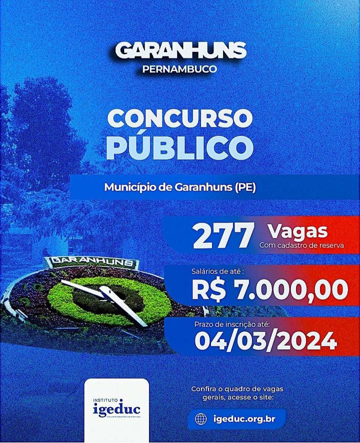 Seguem abertas as inscrições para os Concursos Públicos em Garanhuns/PE