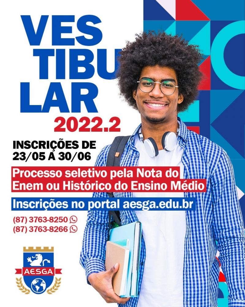 Seguem abertas as inscrições para o Vestibular 2022.2 da AESGA